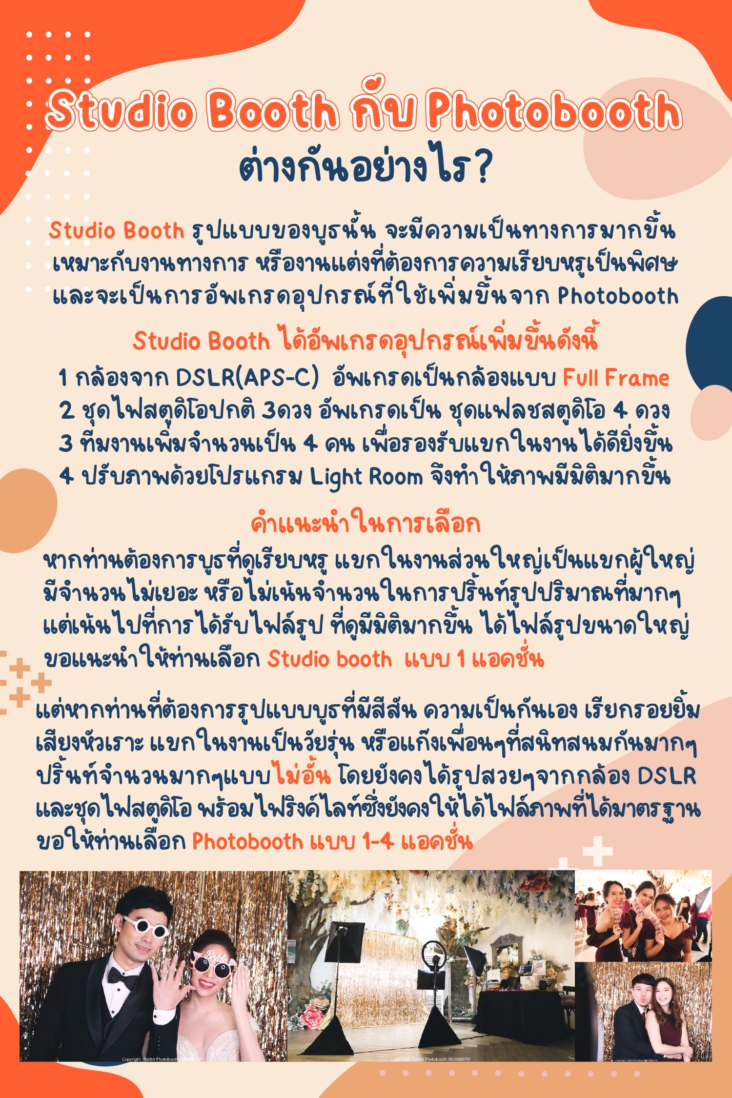 สวัสดีครับ บ่าว-สาว ที่กำลังเตรียมตัวจัดงานแต่งงานในฝันของตัวเอง แล้วกำลังมองหากิจกรรมสนุกๆภายในงาน แต่ก็กำลังสงสัยว่า ระหว่าง Studio Booth กับ Photo Booth ที่กำลังฮอทฮิตอยู่นั้น แตกต่างกันอย่างไร และเราควรเลือกอะไรดี ระหว่าง Studio Booth กับ Photo Booth วันนี้เรามาหาคำตอบกันครับ